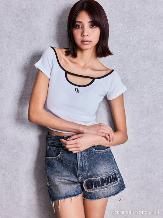 商品名:GYDA×GALFY ハイウエスト GalDA bijou デニムショートパンツ