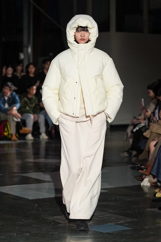 2026年4月21日(火)、東京都千代田区の科学技術館にて開催されたライブエキシビジョンでは、12名の男女のモデルによるランウェイ形式にて、デビューシーズンとなる2026年秋冬コレクションの主要アイテムを32ルック披露しました。