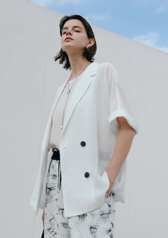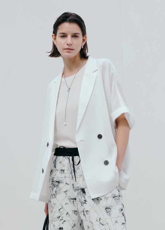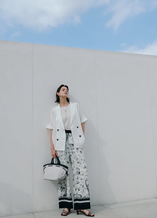 Jacket ¥28,600 Blouse ¥12,100 Pants ¥26,400 Accessories ¥11,000 Bag ¥30,800