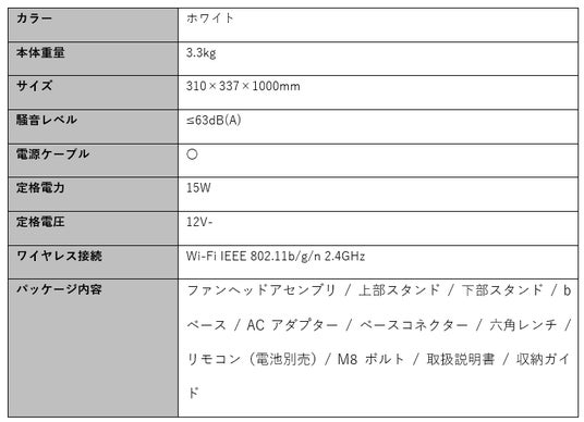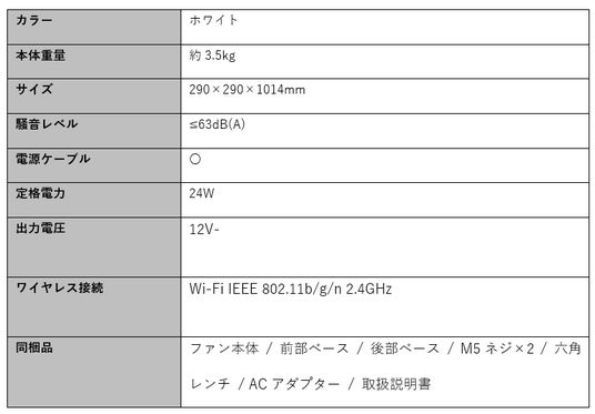 ■Mijia スマート扇風機 Pro Slimスペック概要
