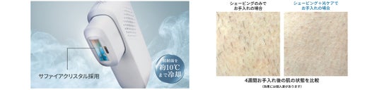 ※1 業務用美容技術を応用した冷却機能「JeweL冷却」を搭載。約2週間のお手入れでムダ毛が目立ちにくくなったと実感。測定部位:脚(12名)。*効果には個人差があります。