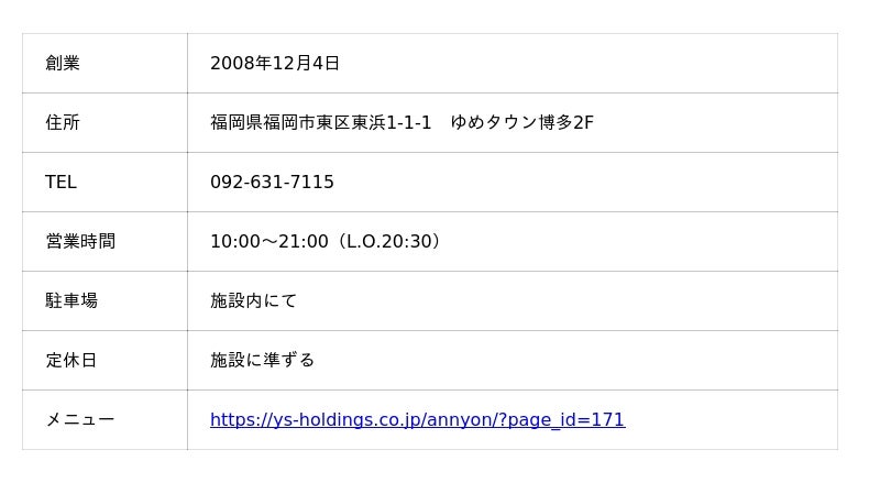 アンニョン 福岡ゆめタウン博多店