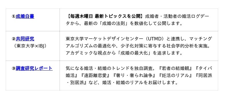 『IBJ結婚みらい研究所』主要コンテンツ