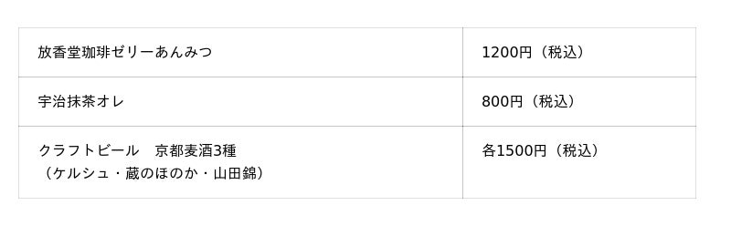日中の主たる提供時間帯として、京食文化や京都の伝統的な食材を用いた和食の「御膳」や、現代らしい洋の技法を用いたプレート、スイーツ等を提供します。幅広い層のお客様にご満足いただけるメニューラインナップを取り揃えます。また、京都・宇治茶の老舗で、日本最古の珈琲店を営む株式会社放香堂との協業により、香り高い抹茶と珈琲を活かした喫茶メニューや甘味を提供します。