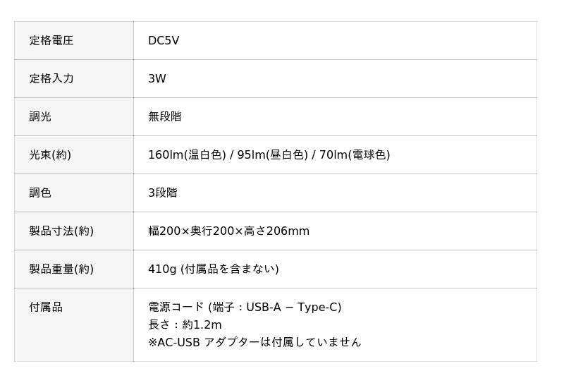 光の⾊は3段階、明るさは無段階で調節できます