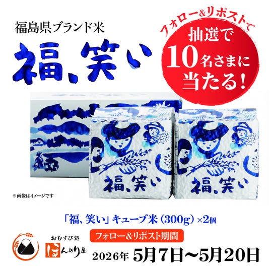 おむすび処 ほんのり屋公式Xでは、福島県産ブランド米「福、笑い」の魅力発信を目的に、その美味しさや特長を広くご紹介するとともに、「福、笑い」が抽選で当たるプレゼントキャンペーンを実施いたします。