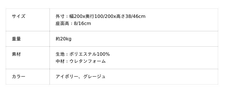 L字クッションを外した際の外寸は200cm×200cmと、キングベッド相当の大きさになり、来客時やお昼寝時のベッドとしてのご使用や、お子様や友人との遊びの空間としてもご使用いただけます。