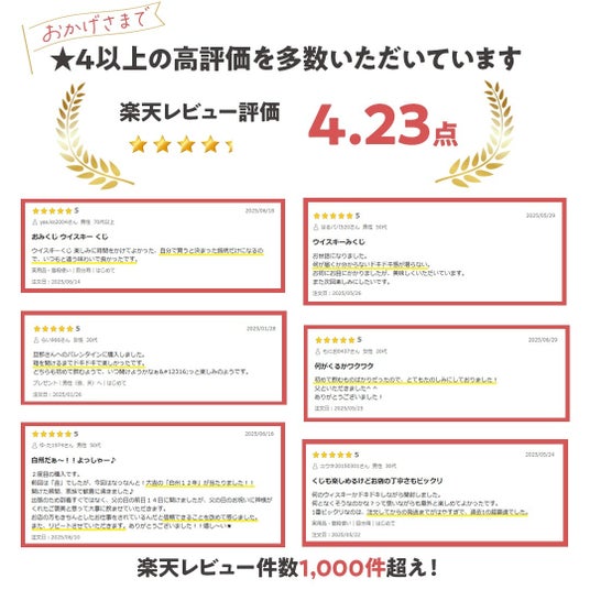 株式会社アップライジングが運営するタチバナE酒販のウイスキーくじは、Amazon、楽天市場、Yahoo!ショッピングなど、複数のオンラインストアで展開し、高い信頼を得ています。