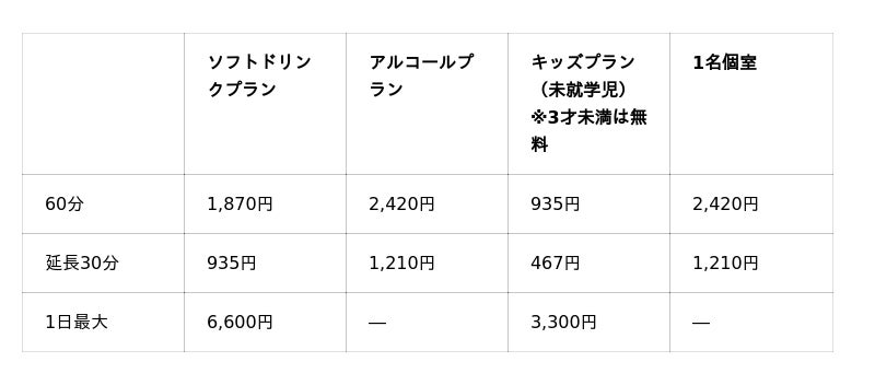 ■「SHARE LOUNGE ワークスタイリング八重洲南口」料金表