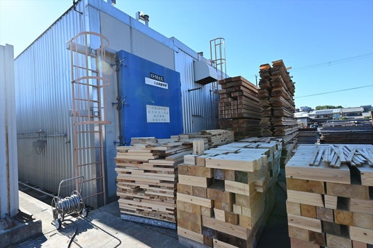 職人が1本1本、素材の「癖」を瞬時に見極め、自動製材装置が良質な材を作り上げています。出来上がった角材は、最新鋭の「高温蒸気式減圧乾燥機」で乾燥し、狂いのない安定した品質の材に仕上げます。
