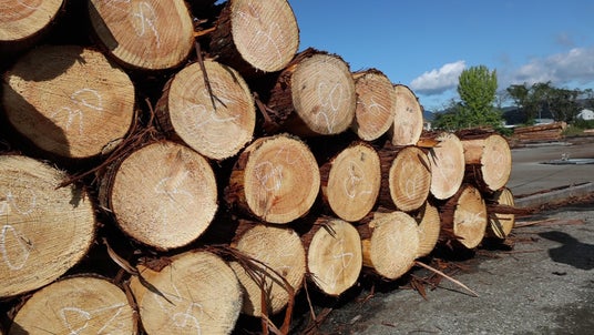 山から切り出した木材は上富田町の貯木場に集めます。ここで材質ごとに選別し、優良な原木が山長の製材所に運ばれます。
