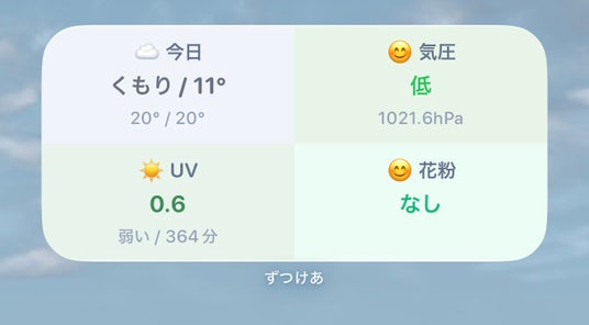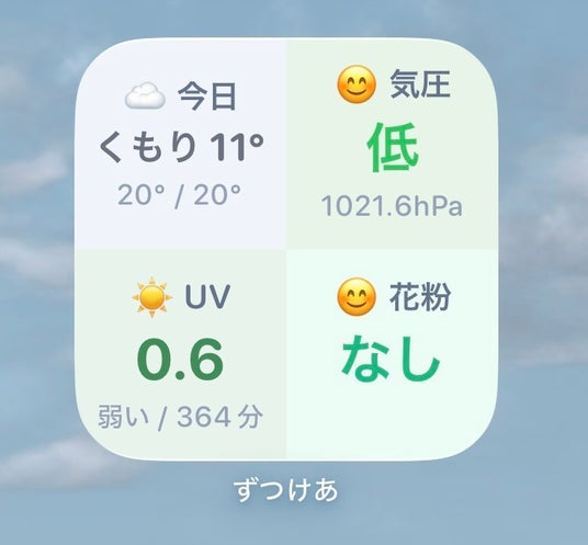 当社は、体調管理アプリ「ずつけあ」において、天気・花粉・紫外線(UV)・気圧情報を一画面で確認できる統合ウィジェット機能を新たに提供開始したことをお知らせいたします。
