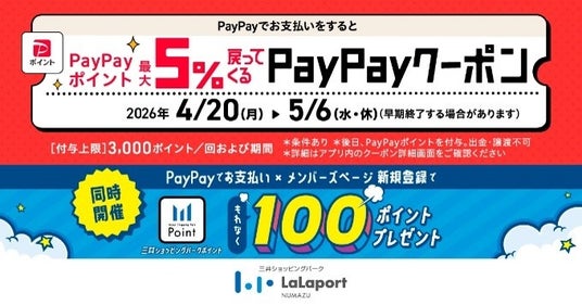 PayPayでのお支払い×メンバーズページ新規登録で三井ショッピングパークポイントもれなく100ポイントプレゼントキャンペーンも同時開催。