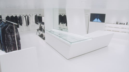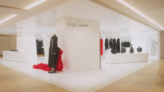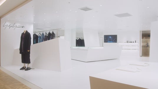 店内は、エントランス側とカウンターを備えた奥側の二つのエリアで構成されており、ヨウジヤマモトのクリエイションを立体的に体感いただける空間となっています。