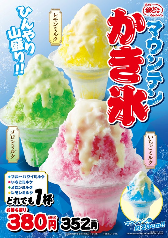 国内外に 築地銀だこ を展開する 株式会社ホットランドホールディングス (本社:東京都中央区、代表取締役社長:佐瀬守男)は、2026年5月1日(金)より、築地銀だこ一部店舗にて、毎年人気の「かき氷」シリーズに、新商品『富士山かき氷 ブルーハワイミルク』を加え、期間限定で発売いたします。