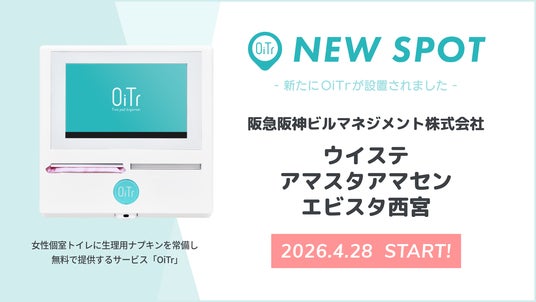 全国の商業施設や交通機関、公共施設、オフィス、学校などの女性個室トイレに、生理用ナプキンを常備し、無料で提供する日本初*のサービス「OiTr(オイテル)」を展開するオイテル株式会社(本社:東京都新宿区、代表取締役:崎山 真)は、「トイレットペーパーのように、個室トイレに生理用品が行き届く社会」の実現を目指し、新たに阪神本線沿線に所在する3施設、野田駅直結の「ウイステ(大阪府大阪市)」、尼崎駅直結の「アマスタアマセン(兵庫県尼崎市)」、西宮駅直結の「エビスタ西宮(兵庫県西宮市)」にOiTrを設置し、2026年4月28日よりサービスを開始いたしましたことをお知らせいたします。