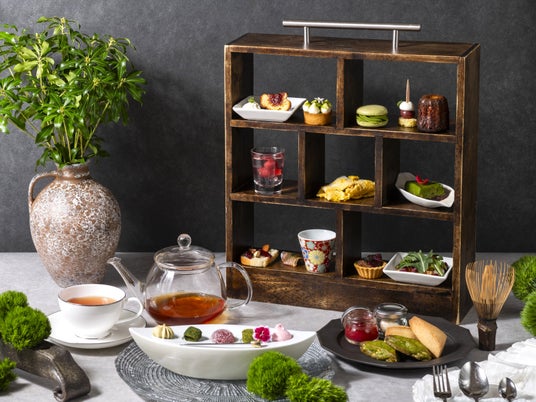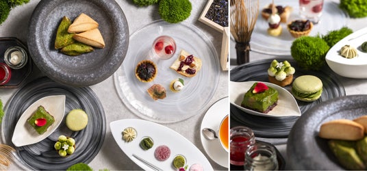 抹茶のコク深さと軽やかな甘さを合わせた「抹茶とチェリーのマカロン」や、赤ワインチェリージャムを添えた「抹茶とヘーゼルナッツスコーン」など、初夏らしい彩りとオリジナリティを兼ね備えたスイーツを贅沢にご堪能いただけます。抹茶とチェリーの魅力が際立つ特別なアミューズやセイボリーとともに、心ほどけるティータイムをお過ごしください。