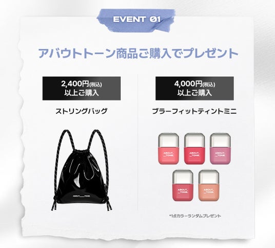 期間中、ABOUT___TONE.商品を規定金額以上お買い上げの方に、ブランド限定アイテムをプレゼントいたします。